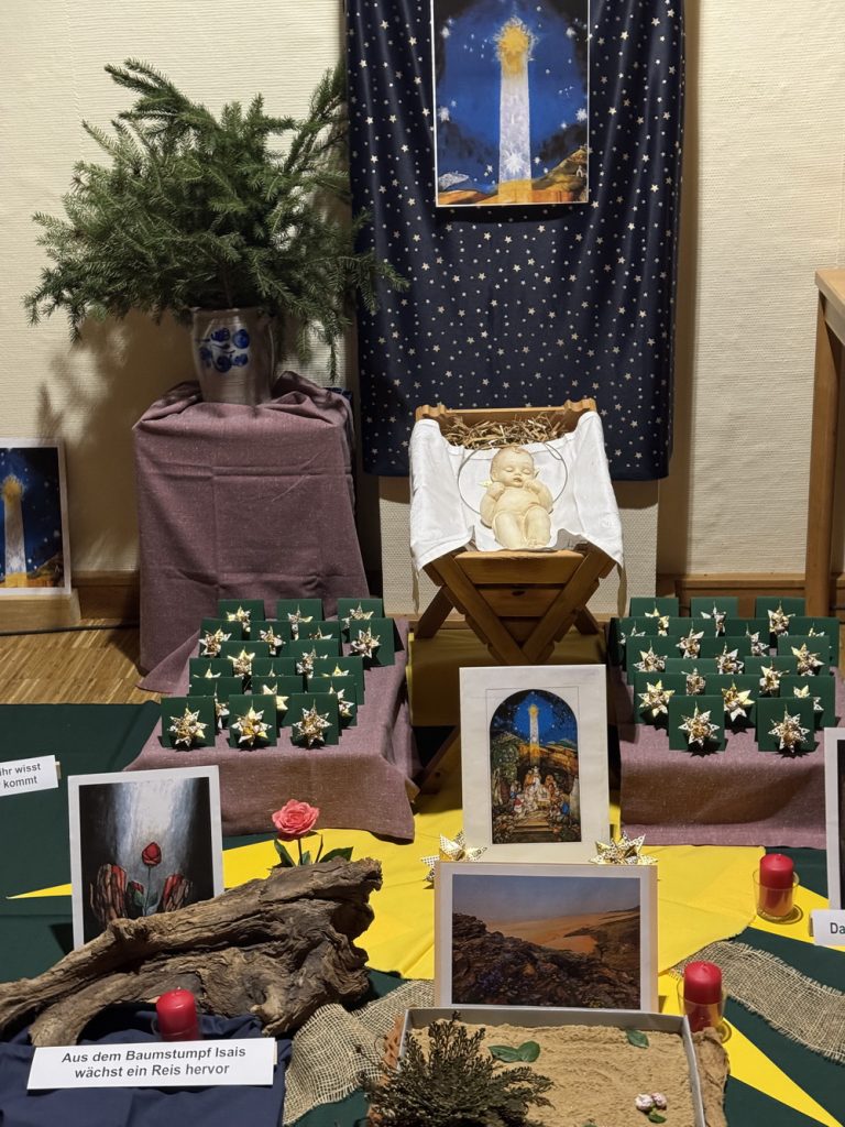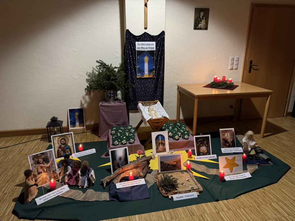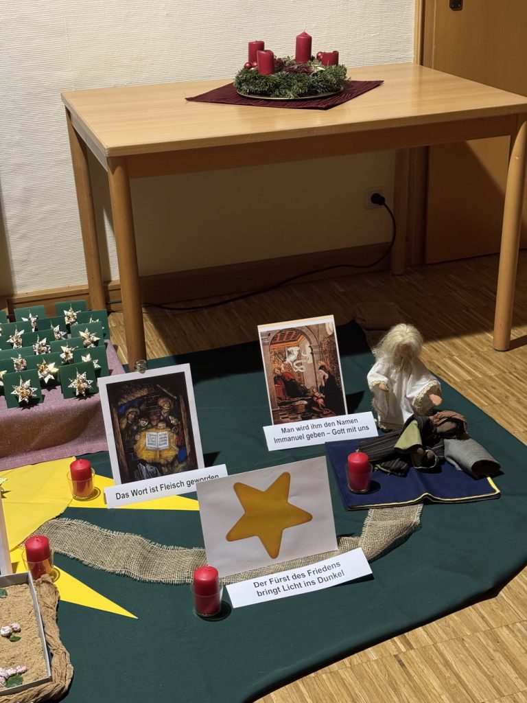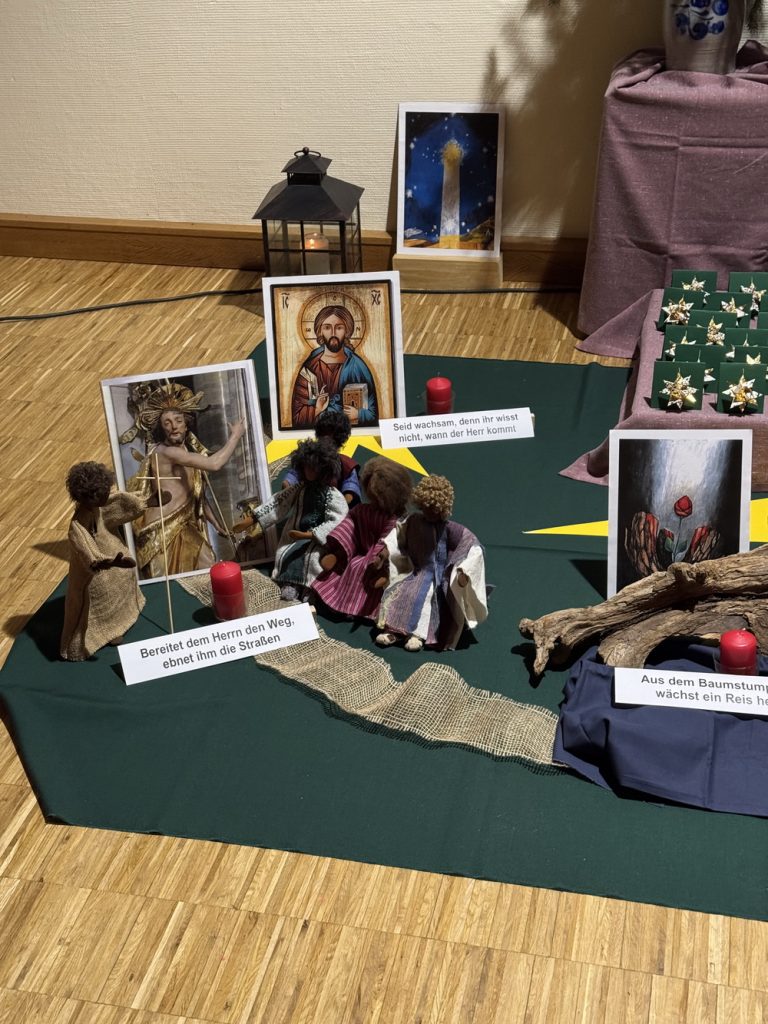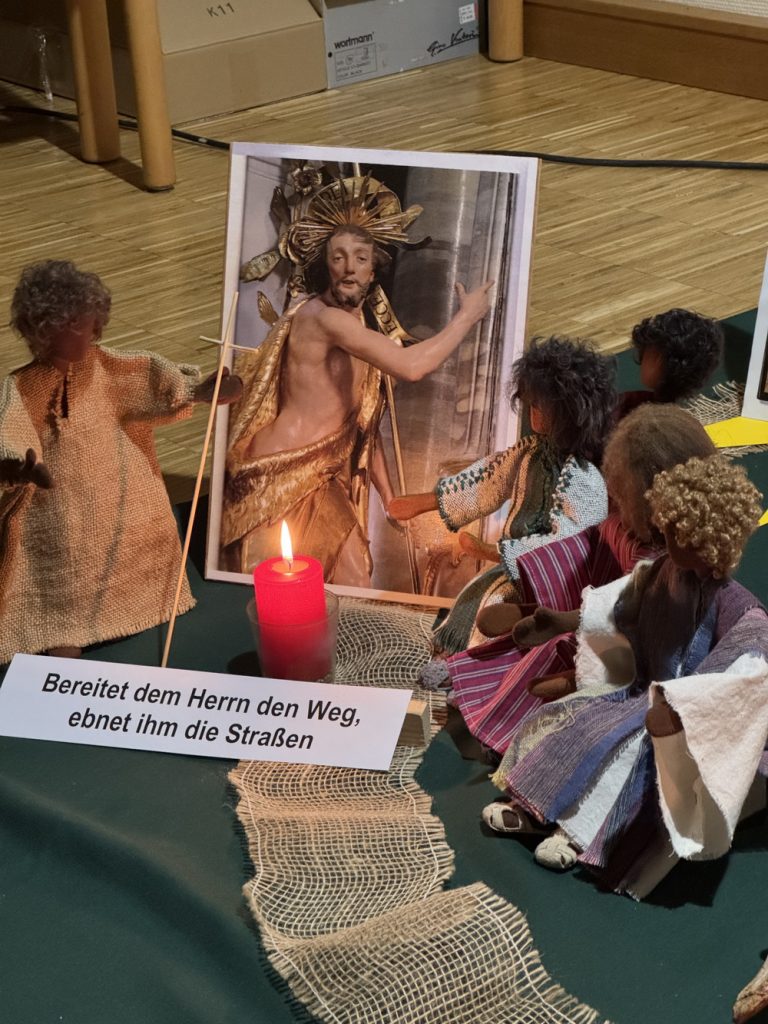 Nacheinander wurden die Evangelien der vier Adventsonntage genauer beleuchtet und mit den Figuren nachgestellt. Mit passenden Liedtexten und einem gemeinsamen Gebet wurde jede Station abgeschlossen.