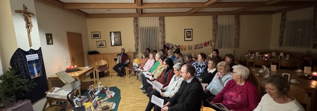 Alle Frauen der Kolpingsfamilie erlebten einem besinnlichen Abend im Advent im Kolpingheim. Mit dem Thema „Ein Stern zeigt uns den Weg zur Krippe“ betrachteten wir mit den Egli-Figuren von Ida Hönle das Geheimnis vom Weihnachten. Musikalisch umrahmte Vikar Rainer Herteis mit seiner Ziehharmonika unsere Lieder.
